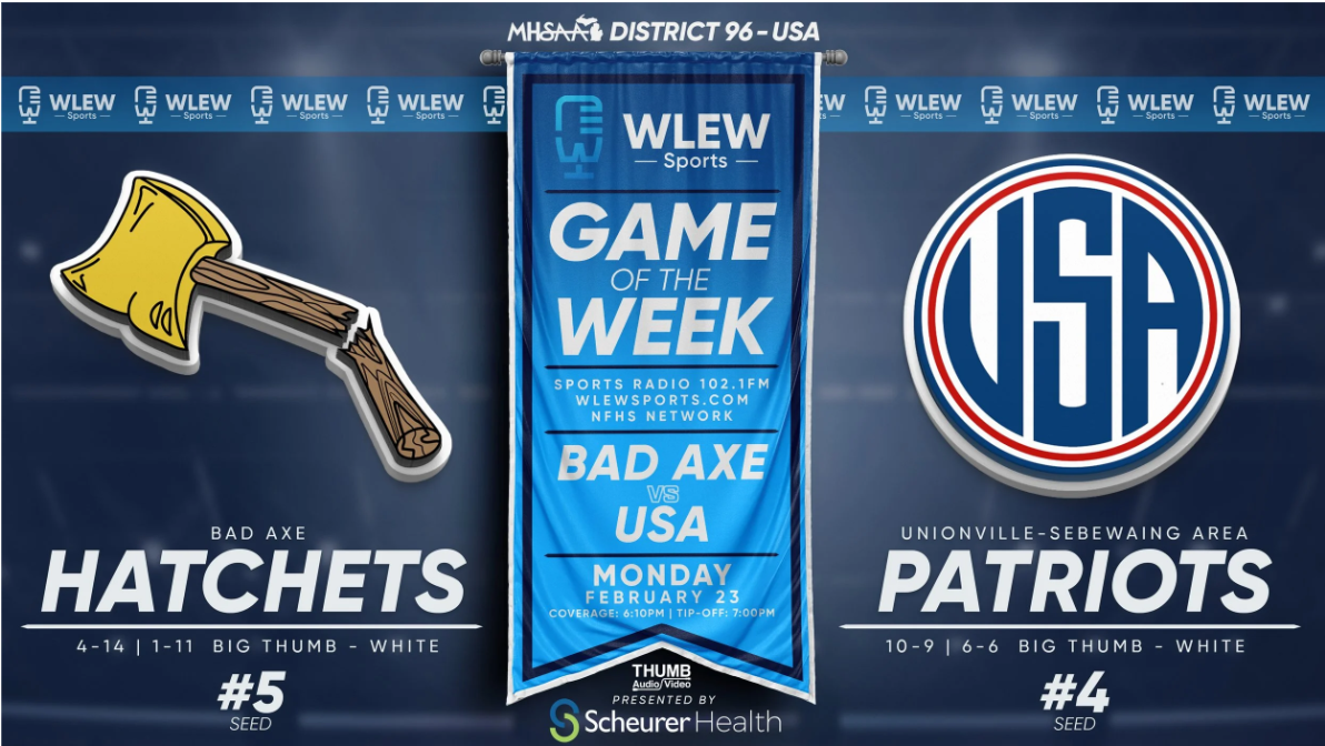 Bad Axe vs. Unionville-Sebewaing Feb. 23rd, 2026 WLEW Sports Network's "Game of the Week" presented by Scheurer Health