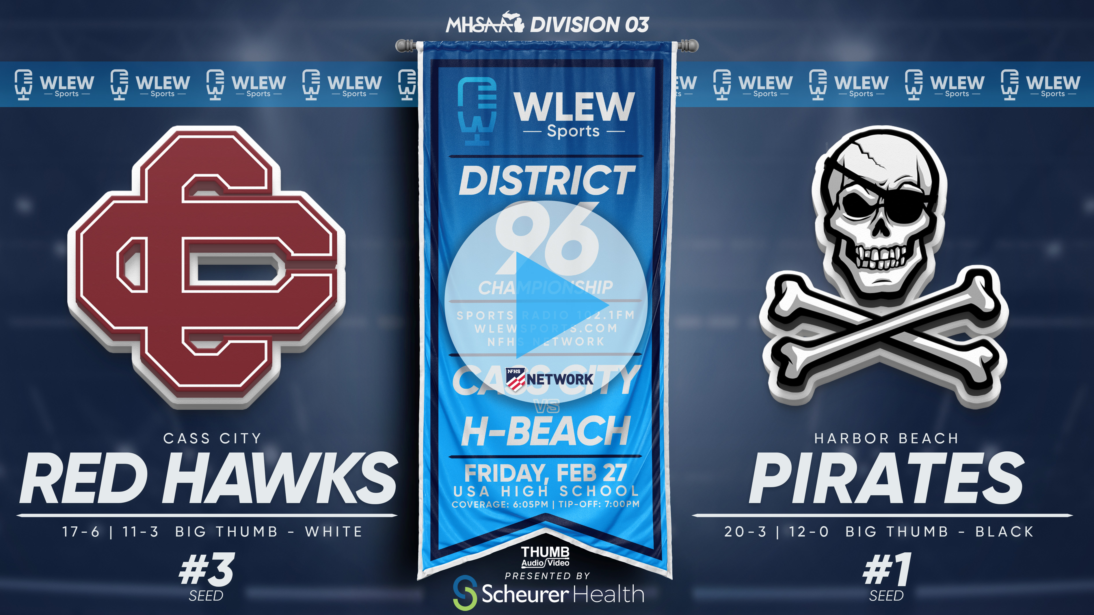 Cass City vs Harbor Beach Friday, Feb. 27th, 2026 starting at 7:00pm (pre-game is scheduled to start at 6:05pm) WLEW Sports Network's "Game of the Week" presented by Scheurer Health