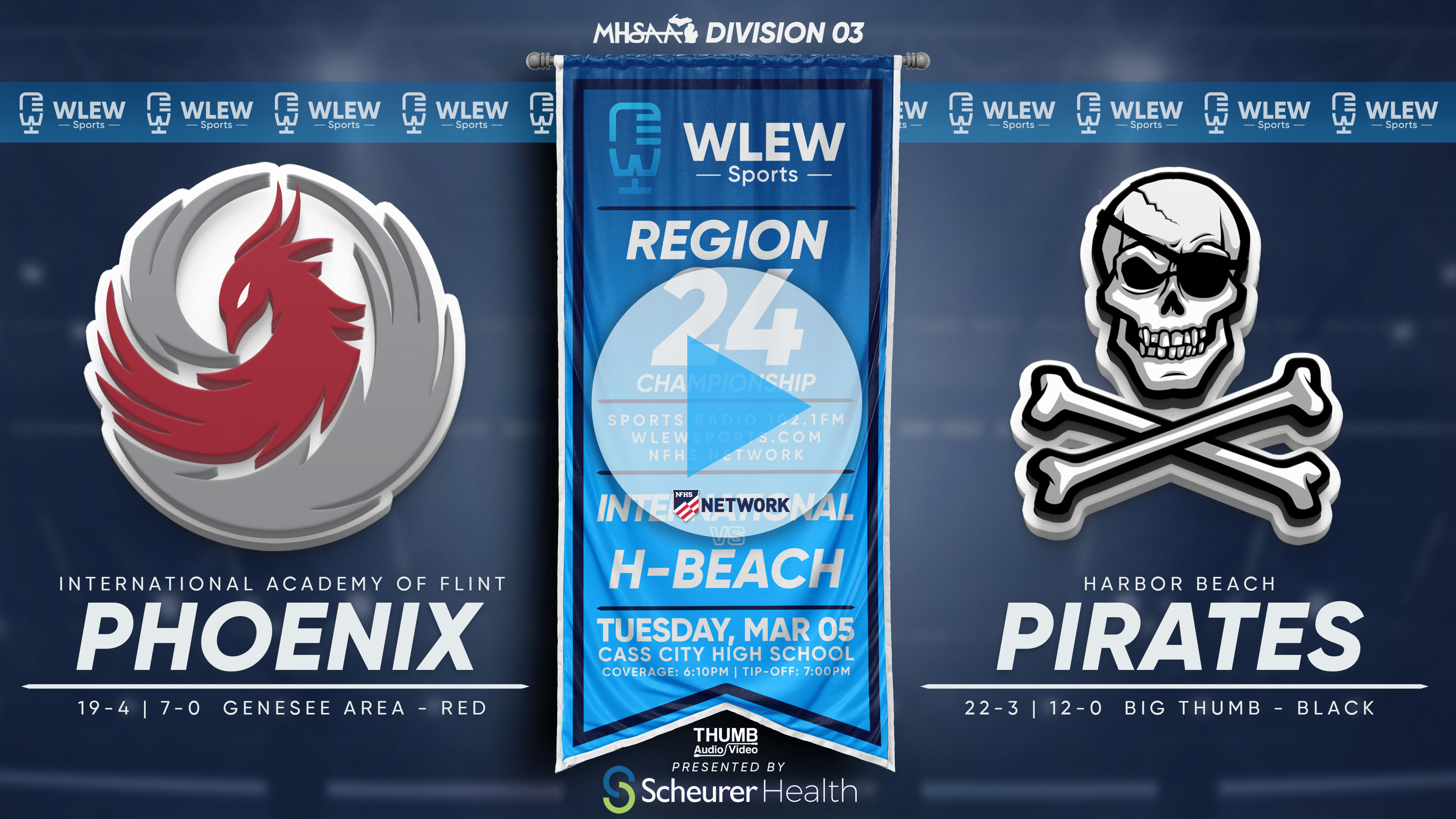 Croswell-Lexington at Harbor Beach Friday, Feb. 13th, 2026 starting around 7:30pm (pre-game is scheduled to start around 6:45pm) WLEW Sports Network's "Game of the Week" presented by Scheurer Health