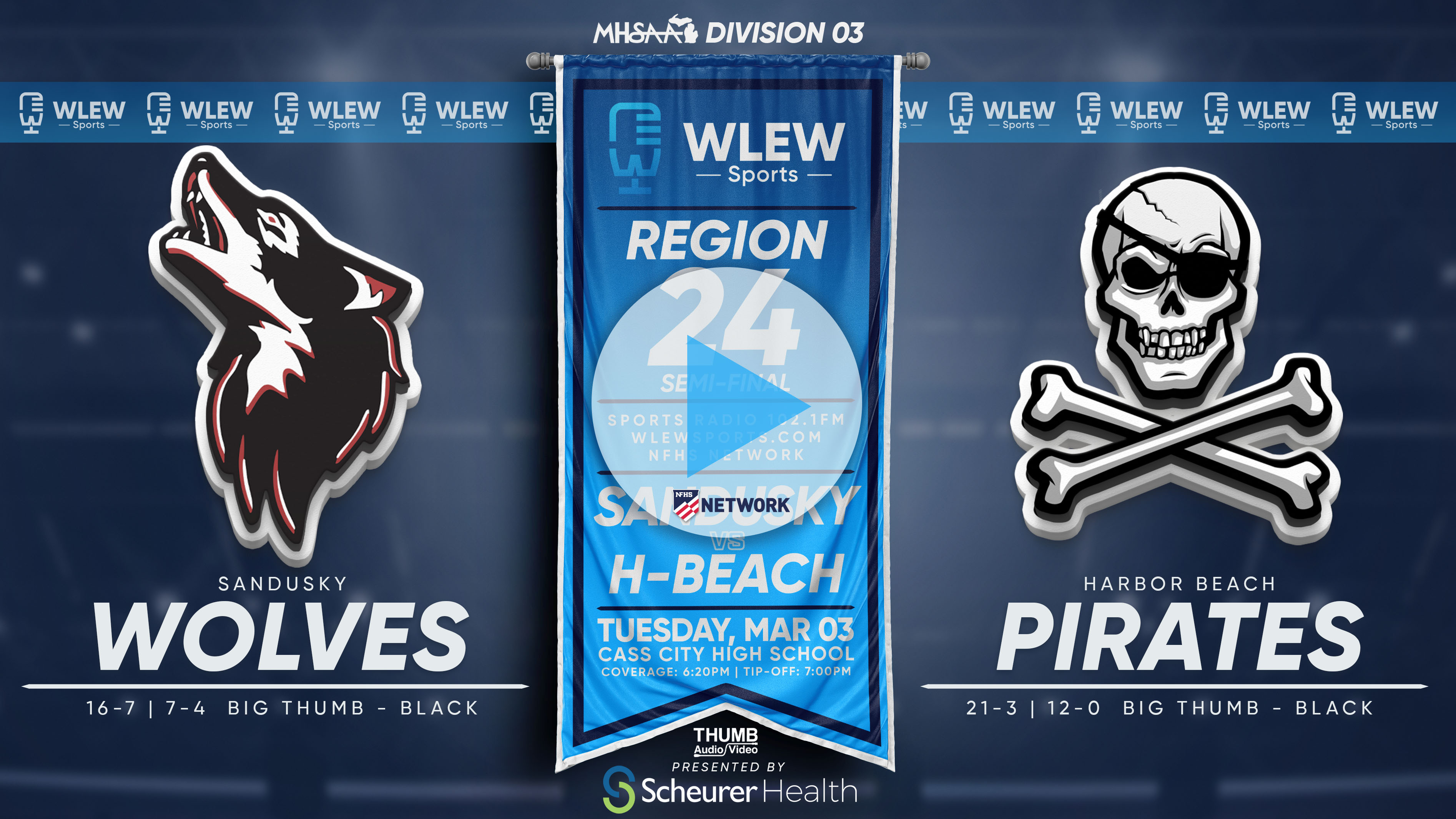 Harbor Beach vs. Sandusky Tuesday, March 3rd, 2026 starting at 7:00pm (pre-game is scheduled to start around 6pm) WLEW Sports Network's "Game of the Week" presented by Scheurer Health